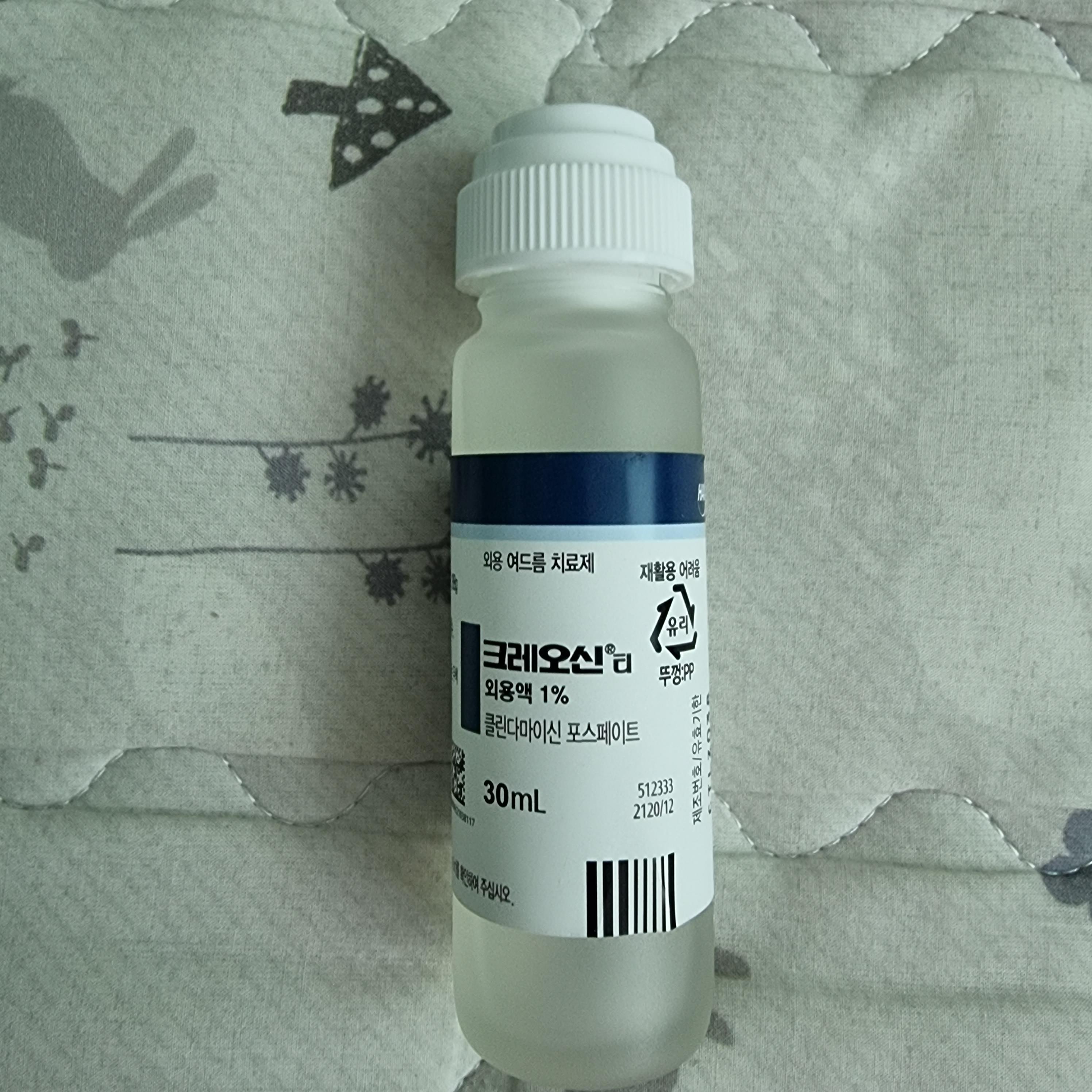 여드름 치료제로 추천하는 제품으로 가장 효과를 봤던 제품이 크레오신 용액이다. 2번째는 로아큐탄이다.