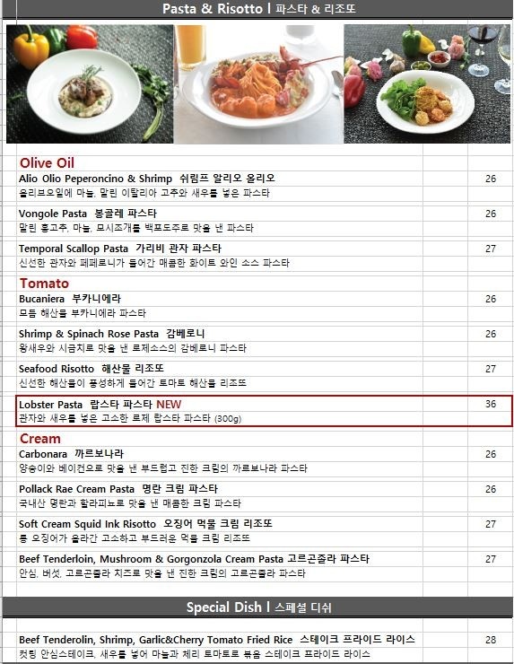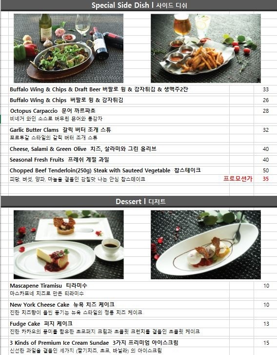 메뉴판은 아래와 같다